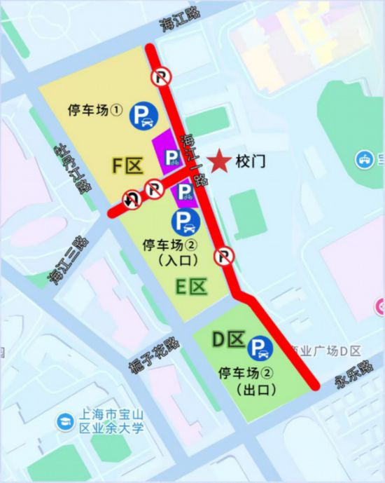 (一)增設高峰期間管理措施根據學生集中進出時間段,對海江一路、海江三路采取高峰時段單向循環的交通管理措施,一是禁止車輛在海江三路全路段掉頭,二是引導從海江路北向南行駛車輛在海江一路海江三路路口北向西通過海江三路駛出,三是引導從海江三路西向東車輛在海江一路海江三路路口西向南通過海江一路至永樂路駛出,減少車輛交織。