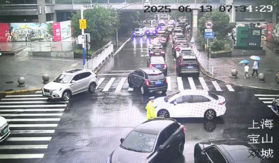 圖6 優化后路口通行情況(四倍速播放)海江一路/海江三路優化交通組織,共筑平安校門路口概況寶山區至德實驗學校(原行知二中)位于寶山淞寶城區內,校門口所在的海江一路寬約9米,北向南機動車單向通行,非機動車南北雙向通行、海江三路寬約15米,為東西雙向機非混行道路,因早晚高峰期間至德實驗學校大量學生由家長驅車接送,導致相關時段內校門周邊臨時停車需求極大,嚴重影響了海江一路、海江三路的正常通行。