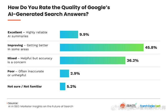 5。80%的消費者對使用AI生成的內容的信任品牌具有中立或積極的態度,只有20%盡管AI概述引起了SEO行業的高度懷疑,但更廣泛的消費市場卻愿意信任AI生成的內容。尤其是當品牌遵循上面概述的準則時。
