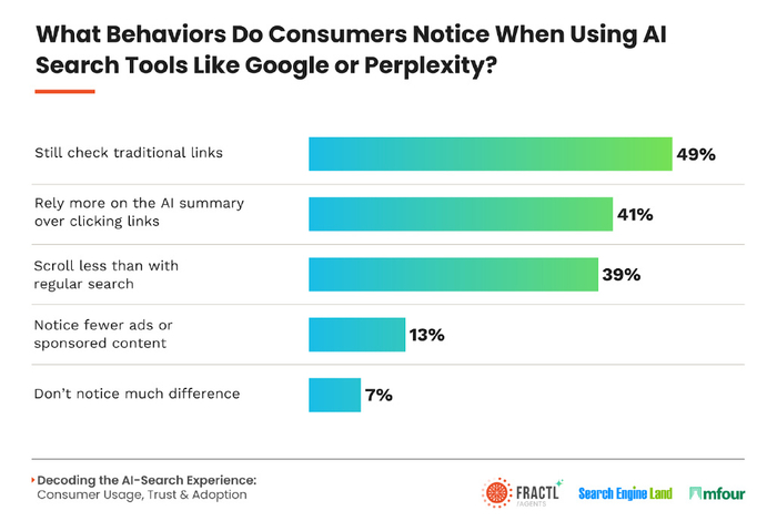 消費者數據講述了大多數頭條新聞的故事。人們正在嘗試AI驅動的搜索,但是其中49%仍在單擊“小藍色鏈接”以進行更深入的潛水。