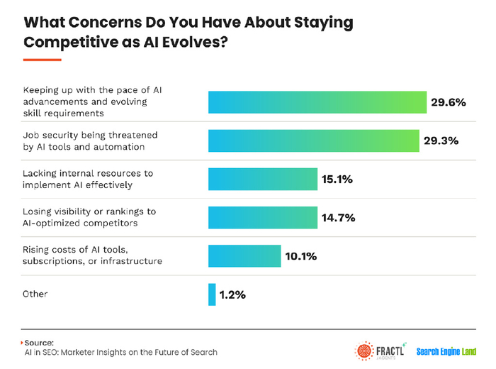 由于AI自動化,害怕工作保障的29%。缺乏內部資源有效實施AI的15%的人。盡管如此,防止AI從事工作的唯一方法是使用AI來更好地完成工作。