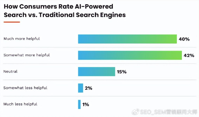 但是,有82%的受訪者同意“與傳統搜索引擎相比,AI驅動的搜索更有幫助”,很明顯,消費者搜索將在不久的將來如何發展。