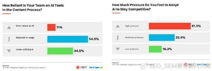 當您的一半行業感到采用某種東西的壓力,但只有11%的人擔心他們會過度使用它時,您正在尋找經典的早期多數焦慮癥,而不是實際的過度依賴認為采用AI的“高壓”的營銷人員通常是:30%的人努力跟上AI進步的步伐。