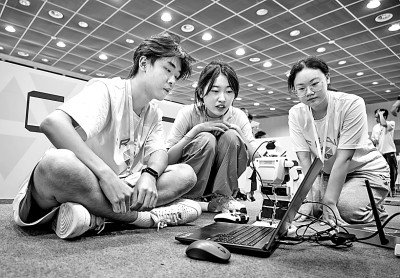 2025年中國大學生機械工程創新創意大賽上,參賽大學生進行設備實操調試賽梁子棟攝/光明圖片 國家大戰略、社會新需求、高校內涵式發展要求催生新專業 “當時我報了‘英語+計算機’項目當作第一志愿,計算機究竟能學多深?心里還有疑問。