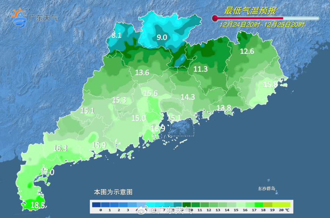 ◎ 24日,韶關(guān)、清遠(yuǎn)北部、肇慶北部市縣多云到陰天,有小雨,其余市縣多云,局部有小雨最低氣溫:粵北大部市縣12~14℃,南部沿海市縣17~21℃,其余市縣14~17℃◎ 25日,粵北市縣陰天有小雨,珠三角和粵東市縣多云到陰天,有分散小雨,其余市縣多云,局部有小雨。